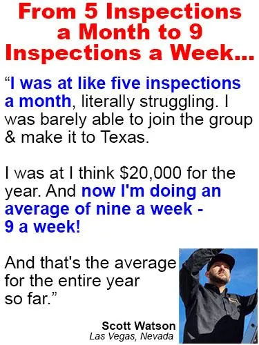 Scott from Nevada is a perfect example. He’s a great guy. He was stuck at 5 inspections a month - working hard, but hitting the same ceiling over and over. After coming to one of our events, he broke through and quickly grew to 9 inspections every week! He didn’t need a perfect market or perfect systems. He just needed the opportunity of a better way… and he ran with it.