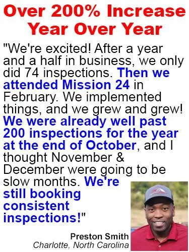 Another great inspector, Preston, took what he discovered at a MISSION event and increased his business over 200% the following year! And there are others who have experienced their own success...