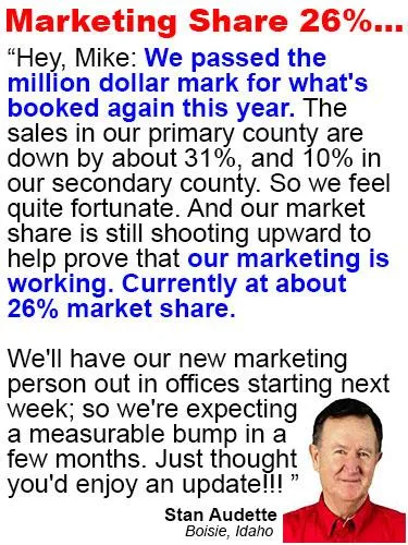Mike Crow here... I recently went to Michigan to visit Jim and Rebecca to talk about their inspection business. What they told me, although amazing, didn't surprise me. They attended MISSION 25, and it had since greatly impacted their business...